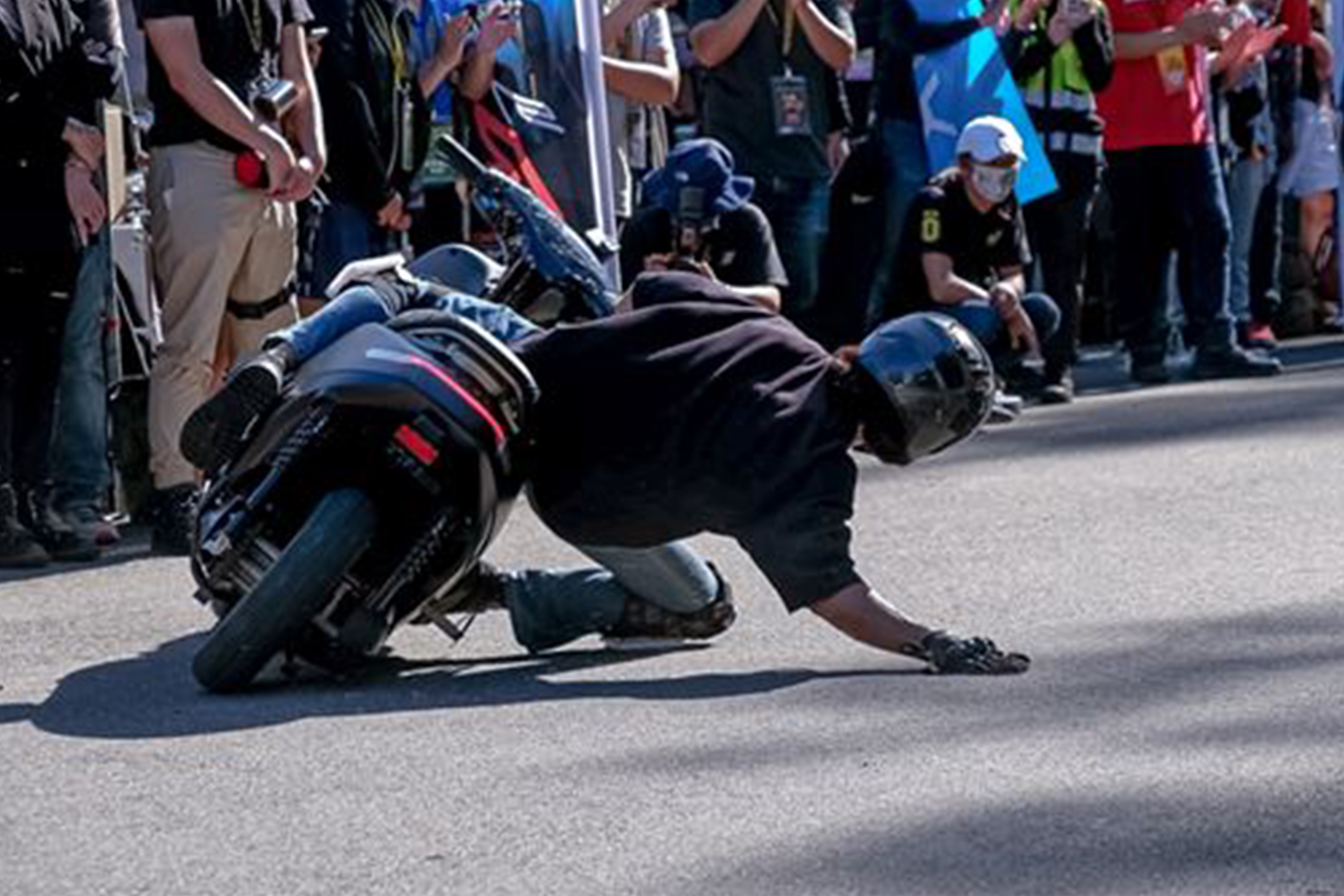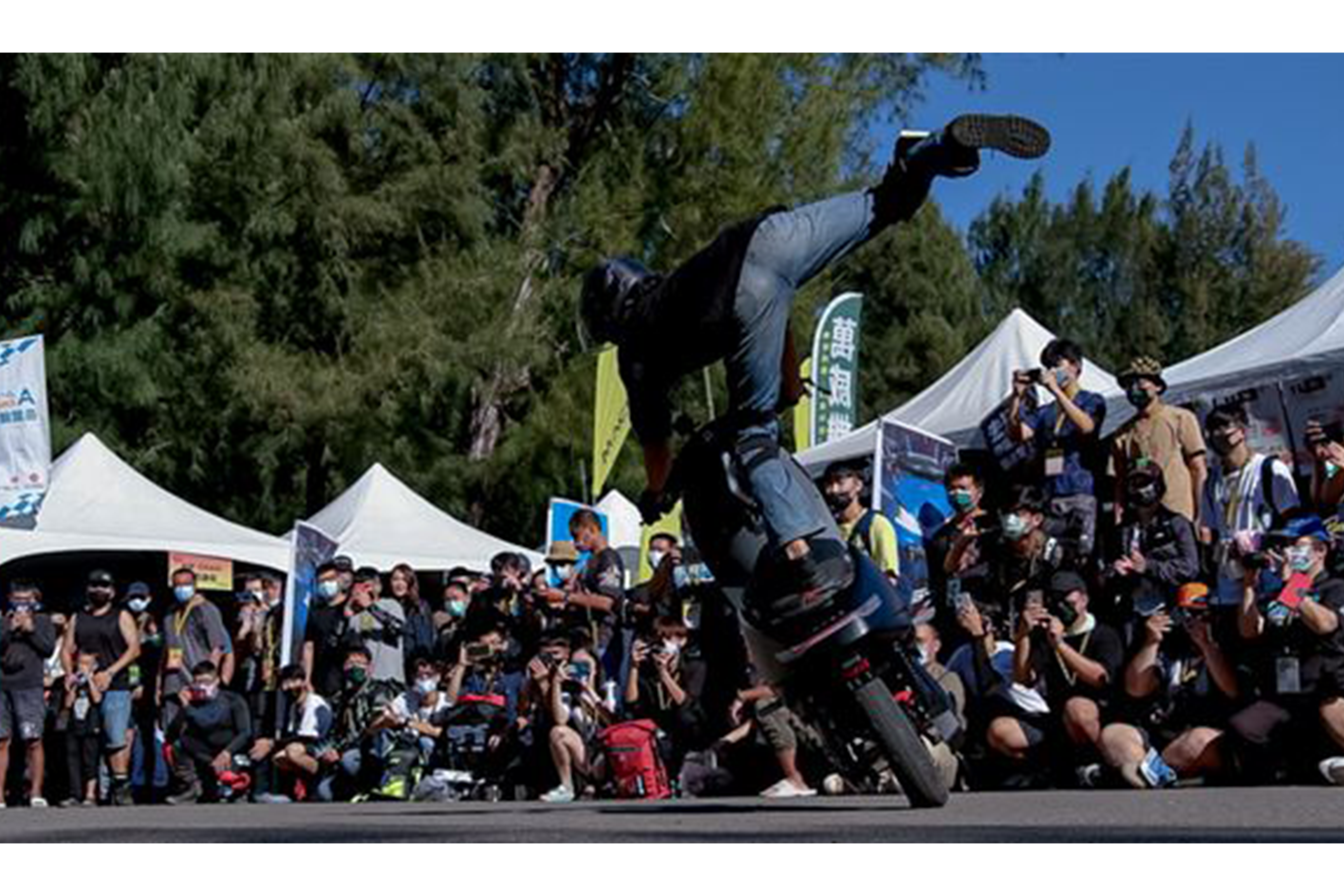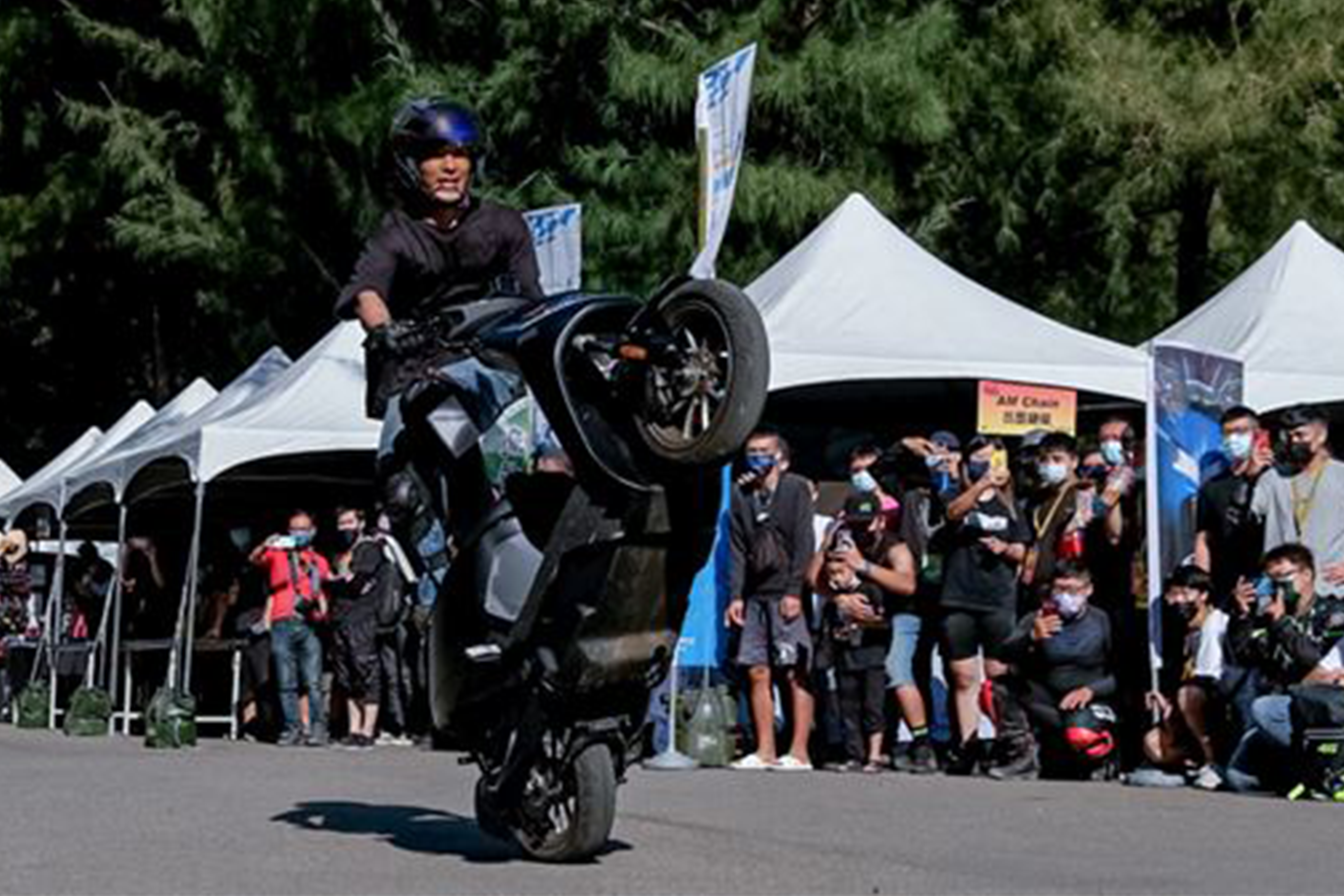 2021年的輕檔車大會師位於通霄海水域場舉辦,光陽的IONEX S7R除了也到場展示外,更邀請了目前定居台灣的日本摩托車特技車手─安倍優以S7R來場令人屏息的精彩特技表演