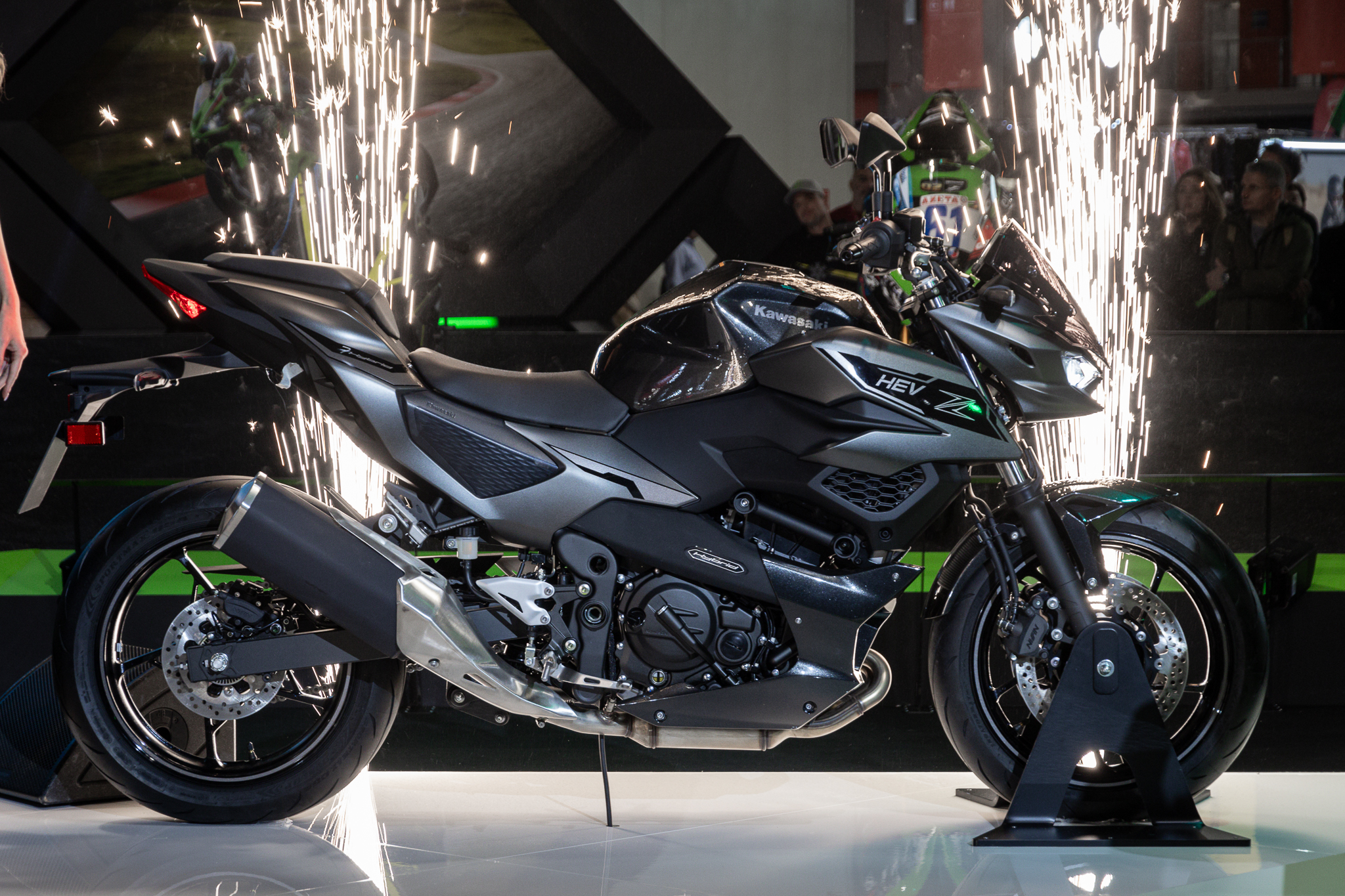 2023米蘭車展:KAWASAKI 油電混合Z系列On26 11 月, 2023In2023, 國外車展 油電混合Z系列 Z7 HEV 繼上個月發布NINJA 7 HEV後,KAWASAKI這次在米蘭車展公布了HEV的街車版本—Z7 HEV,搭載451c.c.並列雙缸引擎與馬達一起運行獲得68.5ps的馬力,全新的手自排變速箱沒有打檔桿和離合器拉桿,電腦會自動幫你換檔。這組混合動力系統可以讓其獲得750c.c.引擎動力和250c.c.機車油耗表現,並具有運動/混合/純電模式三種動力系統,純電更可以不發動引擎,只靠馬達就能進行低速走行。 HEV系列街車版本 採用451cc並列雙缸引擎結合9kW電動馬達 可以只用電動馬達低速騎行,續航力達12km 在享有紅牌動力的同時油耗僅和250cc差不多 熱門黃牌忍者改朝換代 KAWASAKI這回為在台灣相當熱門的NINJA 400進行改款,修改引擎增加排氣量至451c.c.,並改名為NINJA 500,動力維持45匹馬力,但是整體轉速峰值由11000降低至9000轉,由高轉馬力改為低轉扭力取向,外型上微幅修身使其更加現代化,更高階的SE版本更是搭在TFT全彩儀表和KEYLESS感應鑰匙系統,這次大家最關心的前懸吊還是採用與前代相同的正叉設定,這款台灣必定引進的黃牌中量級跑車的更新,是否讓你蠢蠢欲動了呢? NINJA 500 排量提升 外型更洗練 全新升級的Z500是Z400後繼車款,車頭有著與其他Z家族不同的高質感造型設計,整體車輛線條也更加緊湊,騎乘姿勢也有經過調整使騎士更舒適,引擎採用與NINJA500相同的新型451c.c.並列雙缸引擎,前避震仍是採用41mm正立式前叉,後避震為中置避震,與H2一脈相承的鋼管車架以及長搖臂短軸距的設定讓Z500會有相當優異的動態表現。高階版本SE同樣會搭載TFT儀表和KEYLESS系統。 Z500 Share your love 上一 文章 2023米蘭車展:YAMAHA新潮與復古的交匯 下一 文章 2023米蘭車展:KYMCO 多功呈現探險出擊 相關文章 2025日本移動展 科技概念新車亮相12 11 月, 2025 2024 東京車展 部品介紹 : HYOD22 4 月, 2024 2024 東京車展 部品介紹 : CARDO22 4 月, 2024
