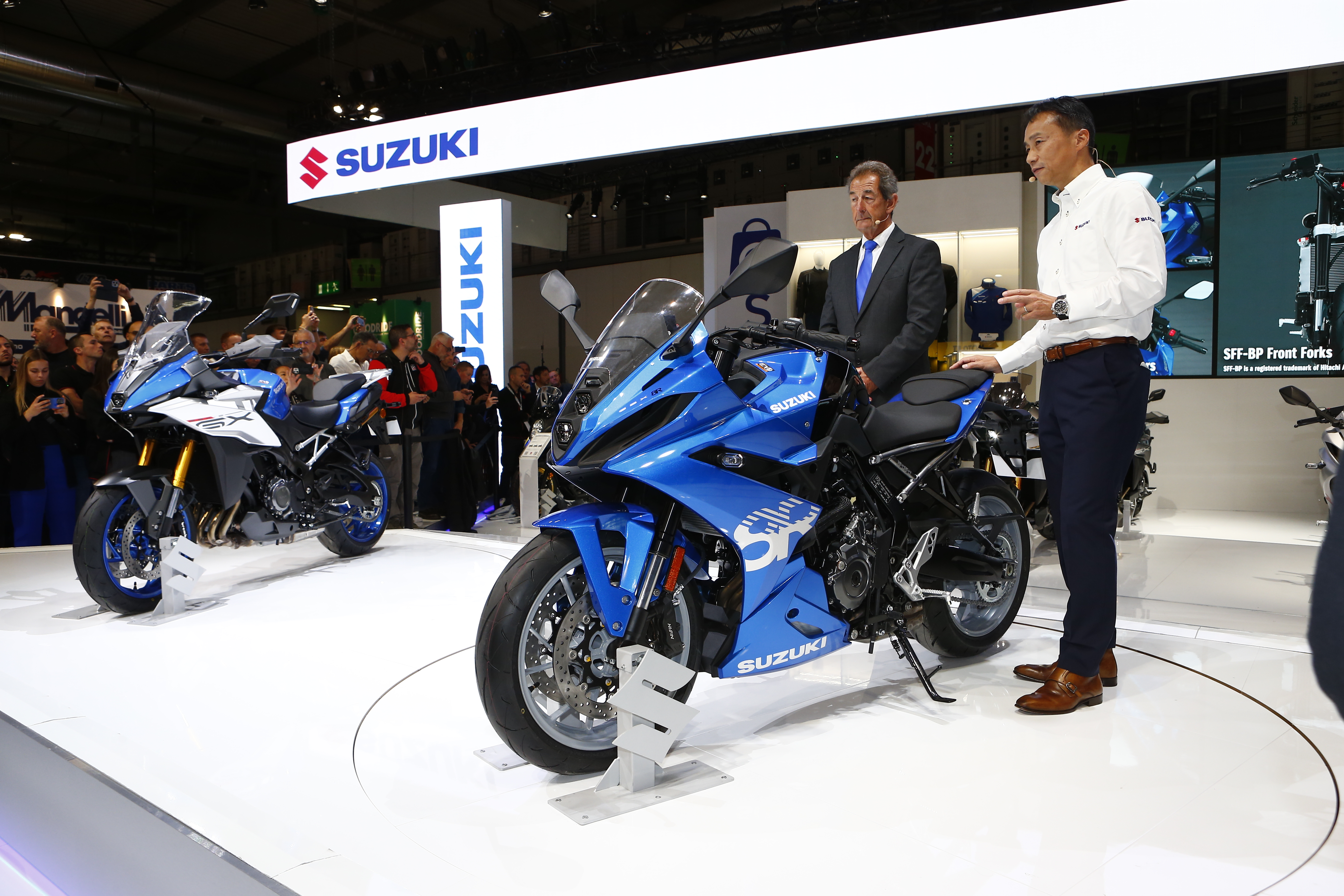 2023米蘭車展:SUZUKI 騎士迫不及待想接觸的新車款On26 11 月, 2023In2023, 國外車展 新生紅牌運動阿魯 繼去年推出的紅牌街車GSX-8S後,SUZUKI今年更進一步端出跑車版本的GSX-8R,延續GSX-8S縱列雙方型魚眼LED頭燈和更緊湊的車身布局,搭配循跡控制系統、進退快排、三種動力模式等豐富配備,帥氣的外型引來廣泛迴響,是目前許多騎士迫不及待想接觸的新車款,雖然動力數據83ps/8500rpm和S版相當,看起來也是採用舒適取向的高把手,不過後續改裝為跑車騎姿想必難度不大。 GSX-8R 科技感十足的縱列魚眼LED燈加上跑車整流罩帥氣度破表 776cc並列雙缸引擎可於4000轉時激發85%扭力 全彩TFT儀錶板內建三種騎乘模式 專注長途旅行的V鳥 V-STROM 800 SE是在原有與GSX-8S相同車架的多功能車─VSTROM 800DE演化而來的機能性更增長的多配備車型,其搭載更大面積的風鏡位騎士抵抗風壓,並且具有越野時車輛發生倒車,可防護車免受擦傷的包覆式保桿,輪框也由DE版本的21吋改為更適應公路的19吋輪框,坐墊也低了3公分來到825mm,還具有三車廂擴增裝載機能性,這款與基本的DE相比,是更注重公路多日的長途行駛的探險機種。 V-STROM 800 公升級直四跨界旅行車 如果說GSX-S1000GT是注重公路旅行的車型,GSX-S1000GX就是踏破惡路的冒險旅行版本,搭載諸多高階科技,目標是舒適且性能快活的豪華車型。首次採用的SAES可根據車速路況,以電子方式控制避震阻尼量和預載,另外SUZUKI將SAES與IMU等數據相結合,開發了SRAS(鈴木道路自適應穩定系統),該程式可檢測不平坦的路面並自動切換懸吊細部設定。 因此其可以在未鋪裝道路上更加舒適,也能在公路展現良好運動性能。 GSX-S1000GX Share your love 上一 文章 2023米蘭車展:HONDA黃蜂火刃合進擊 下一 文章 2023米蘭車展:YAMAHA新潮與復古的交匯 相關文章 2025日本移動展 科技概念新車亮相12 11 月, 2025 2024 東京車展 部品介紹 : HYOD22 4 月, 2024 2024 東京車展 部品介紹 : CARDO22 4 月, 2024