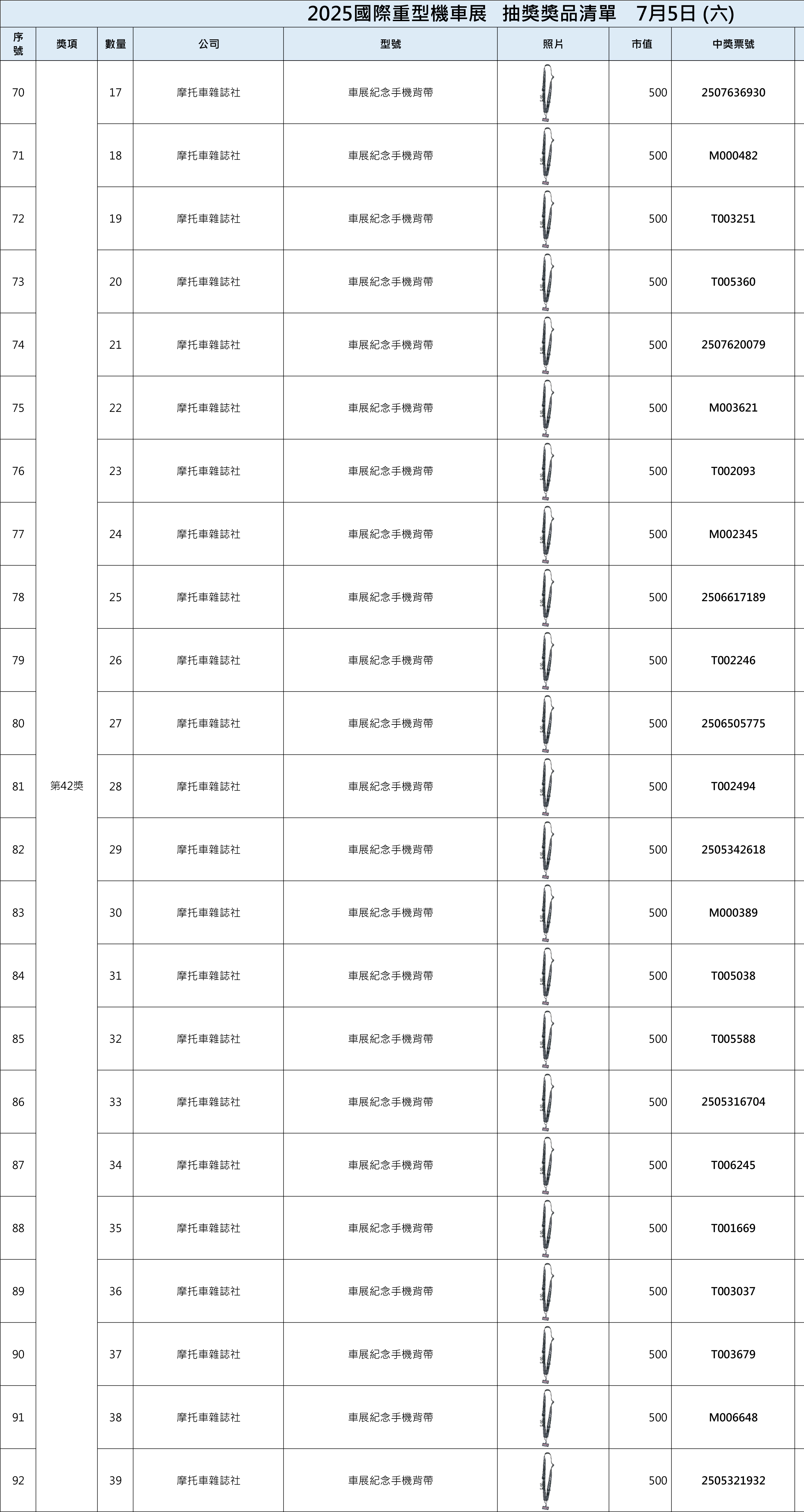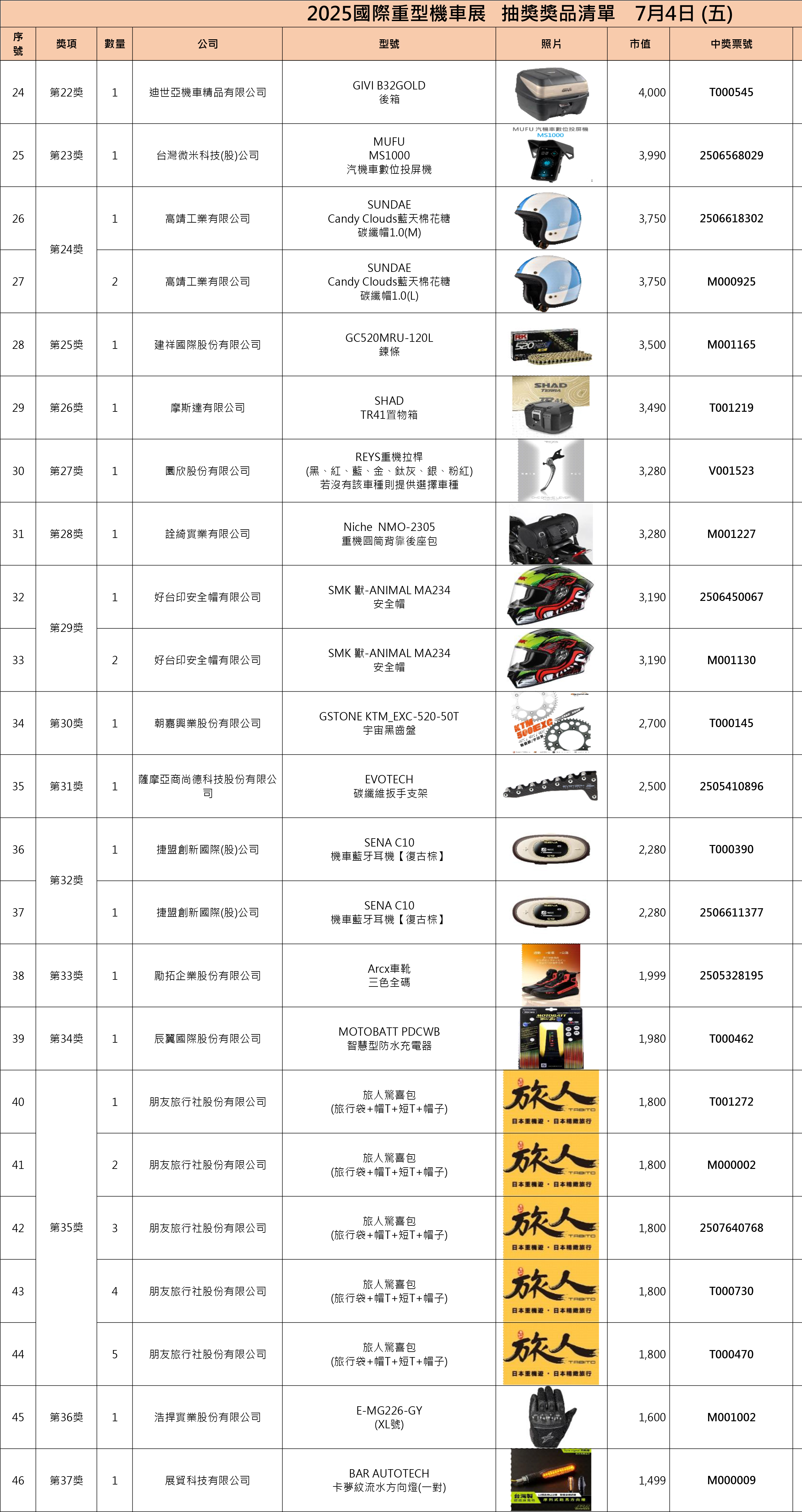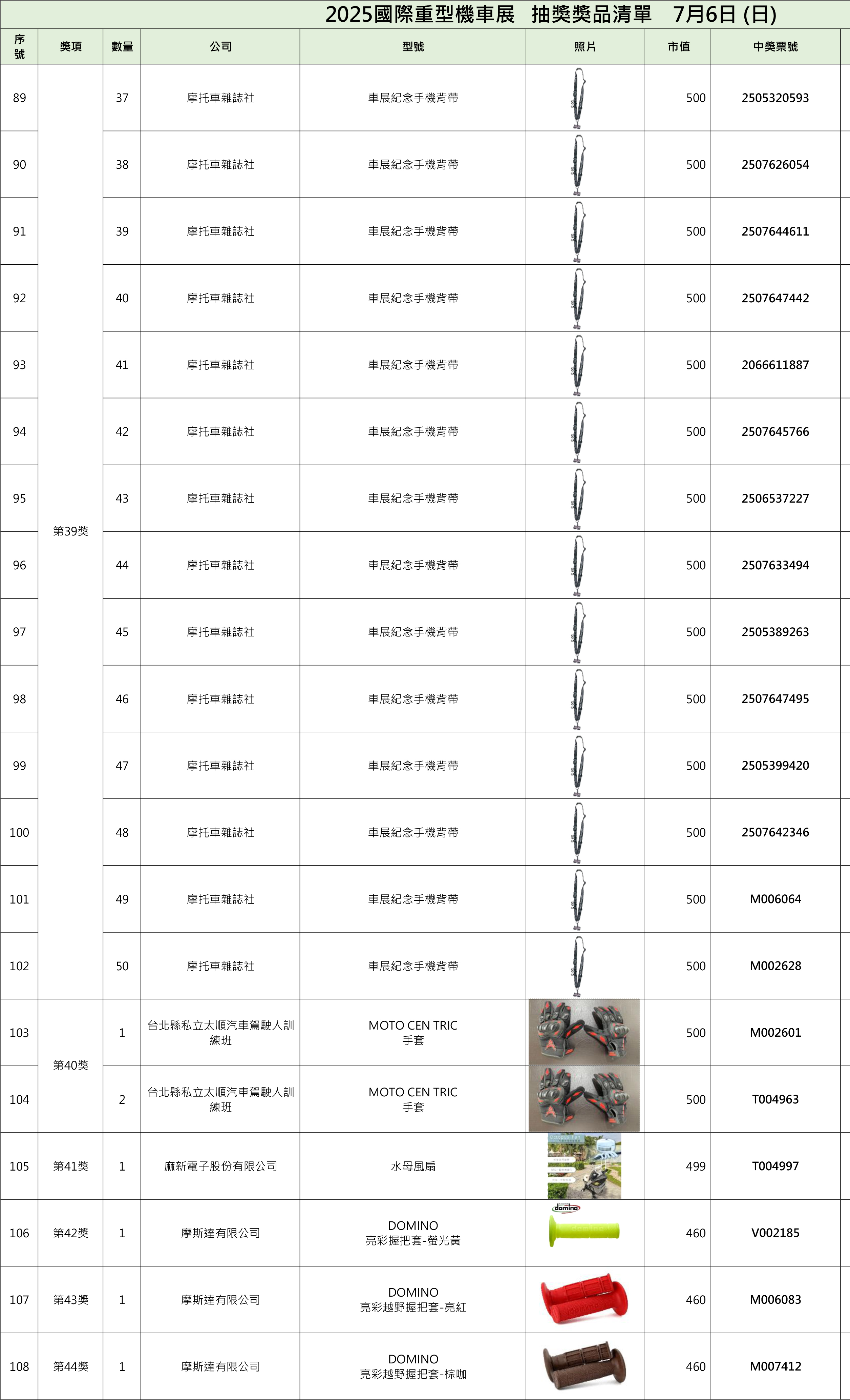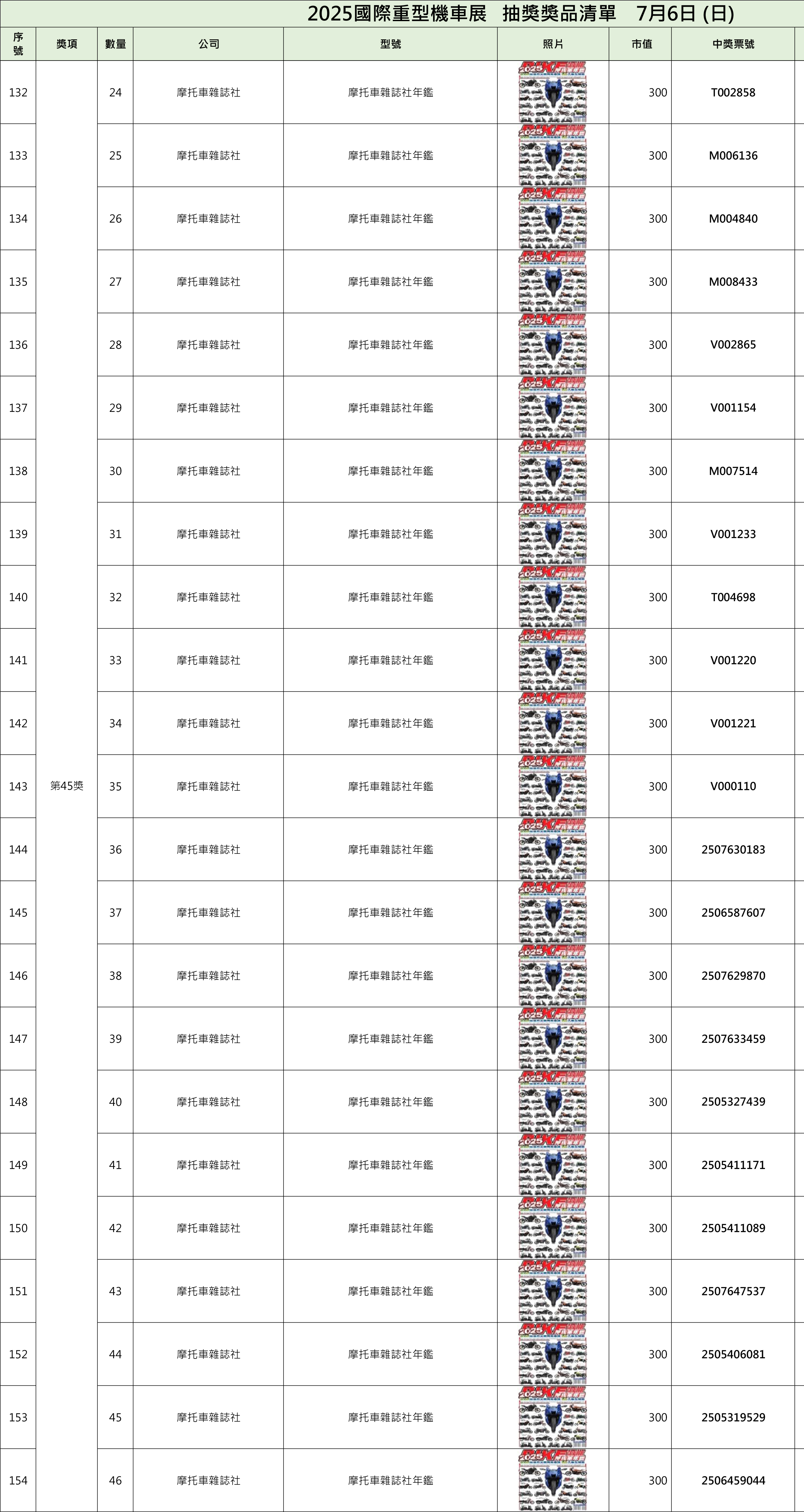 2025國際重型機車展中獎名單On4 7 月, 2025In2025, 2025, 歷屆中獎名單, 獎項清單 一、現場中獎者須出示摸彩券存根聯,經核對無誤後,憑抽獎工作人員註記後將發放獎品兌換券,請憑證至該提供之展商處領取。二、中獎人如未能在現場領取獎品兌換券,則於展後至官網比對無誤後請至摩托車雜誌社或將中獎存根聯及身份證影本掛號寄至主辦單位,經核對領取人身份資料無誤後,將發放之該獎項之獎品兌換券,得獎人請持兌換券自行至該提供之廠商指定店面領取。即日起至7月18日前中獎人須完成兌獎券兌換,逾期視同自行放棄得獎權益,事後不得要求補發。三、若有貨物寄送及郵資相關問題一律由中獎人自行負擔(請與授獎廠商協調代寄事宜),主辦方概不負責。 中獎查詢 Share your love 上一 文章 Honda Motorcycle國際重型機車展五大車系磅礡巨獻 下一 文章 2025國際重型機車展第二天中獎名單 相關文章 四缸靈魂回歸街道!CB1000F 登場,Honda 把賽道動力變成日常樂趣30 12 月, 2025 2025日本移動展 科技概念新車亮相12 11 月, 2025 2025國際重型機車展車友滿意度調查14 8 月, 2025